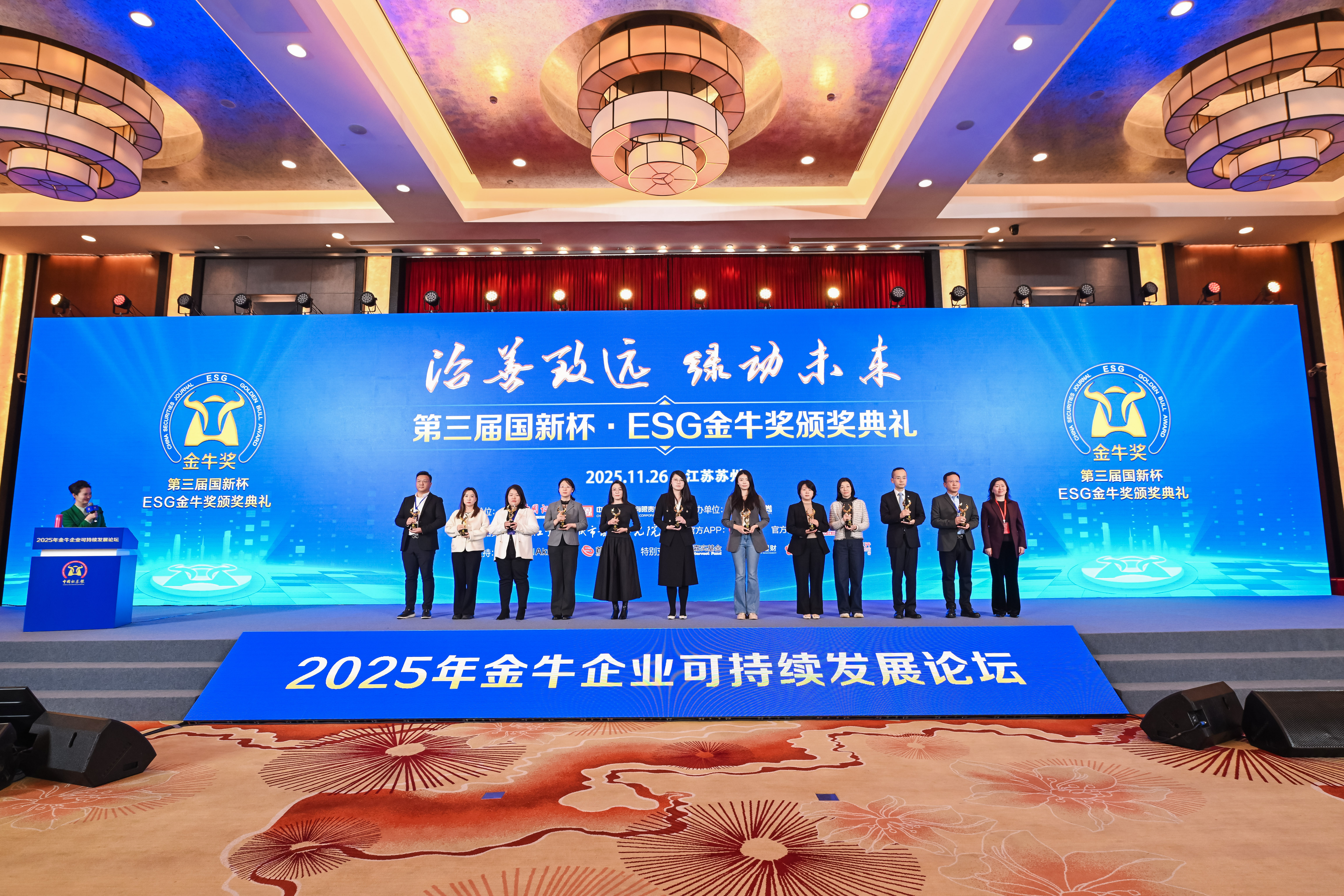 中成股份荣获“第三届国新杯·ESG治理金牛奖” 11月26日,由中国证券报和中国国新联合主办的“2025年金牛企业可持续发展论坛暨第三届国新杯·ESG金牛奖颁奖典礼”在苏州举行,通用技术中成公司旗下上市公司中成股份(000151.SZ)凭借在可持续发展与ESG治理方面的卓越表现,再度斩获“ESG治理金牛奖”。10
