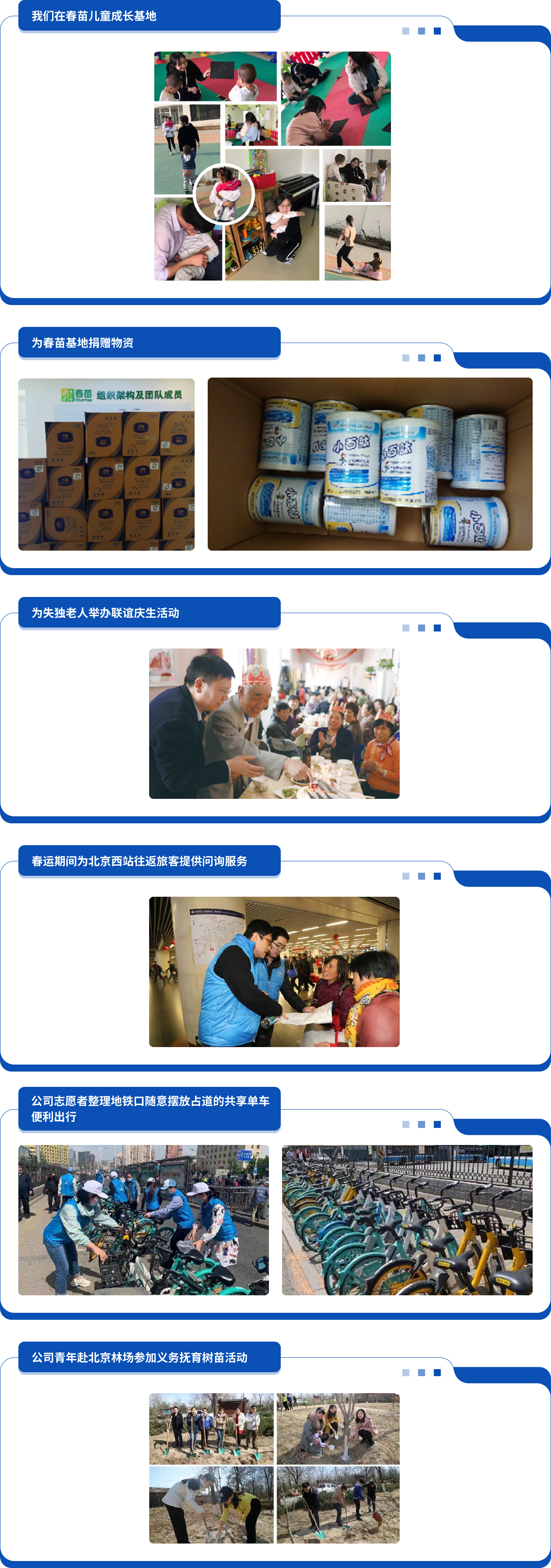 公司热心公益事业,关注社会弱势群体,组织公司员工定期前往儿童福利院、养老院为孤残儿童、失独老人送去关爱。
