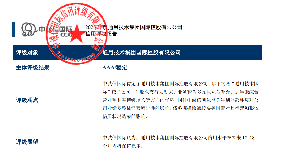As one of China’s leading credit rating agencies, CCXI’s rating reflects strong recognition of the company’s operational strength, financial stability, and debt-servicing capacity. This achievement will further enhance the company’s market credibility, boost investor confidence, and provide solid support for its domestic and international business expansion and financing activities.