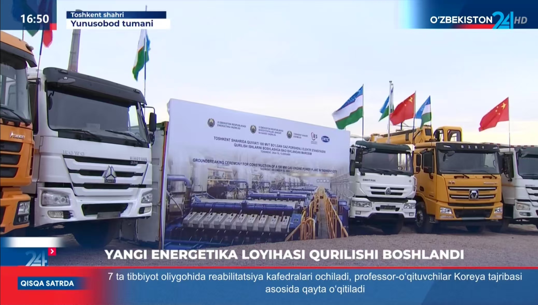 12月13日,通用技术国际公司总经济师刘旭赴乌兹别克斯坦参加重点能源项目集中开工及并网典礼。乌兹别克斯坦总统米尔济约耶夫出席并发表致辞,对中方推动乌兹能源结构转型和经济社会发展做出的贡献表示高度赞赏。塔什干100MW热电联供投资项目团队以现场连线的方式接入典礼。