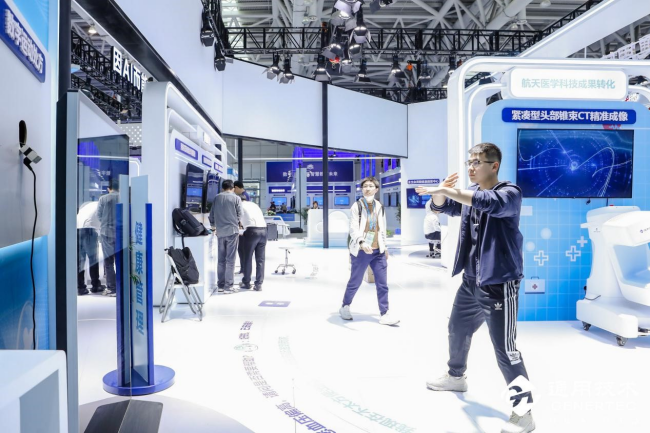 航天医学是我国航天事业的重要组成部分,通用技术集团组建成立航天医学中心,建立系统化航天医学研究体系,此次携脑组织通道测量分析调控仪、无创可穿戴光电一体化脑康复仪、紧凑型头部锥束CT精准成像系统等“硬核”设备亮相峰会,展示最新航天医学科技转化成果,引起大批观众驻足体验。